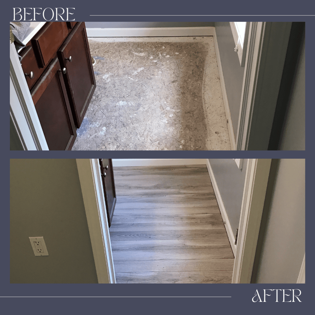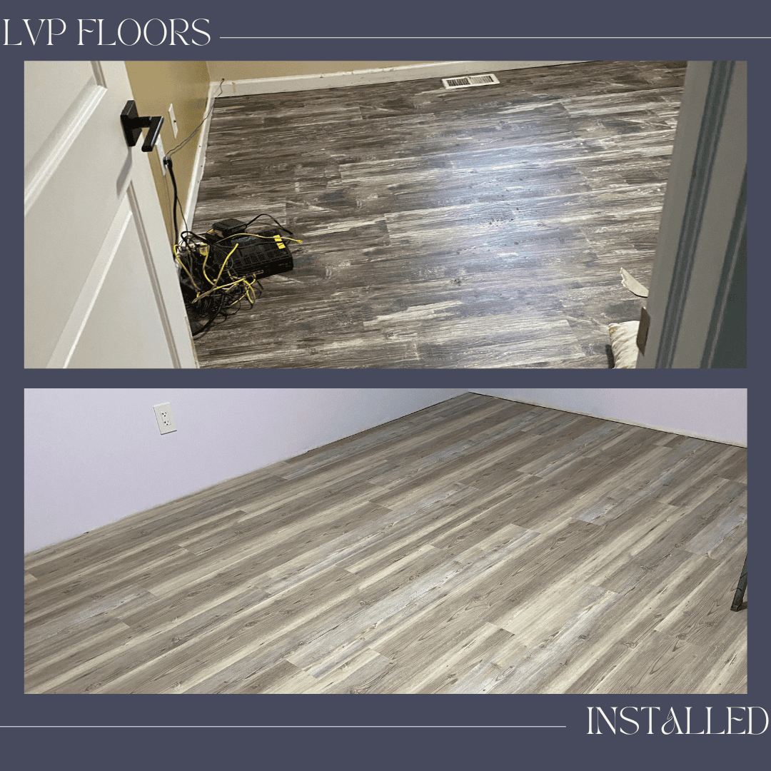 Installation of LVP and laminate flooring including floor trim molding. Minor sub-floor repairs.