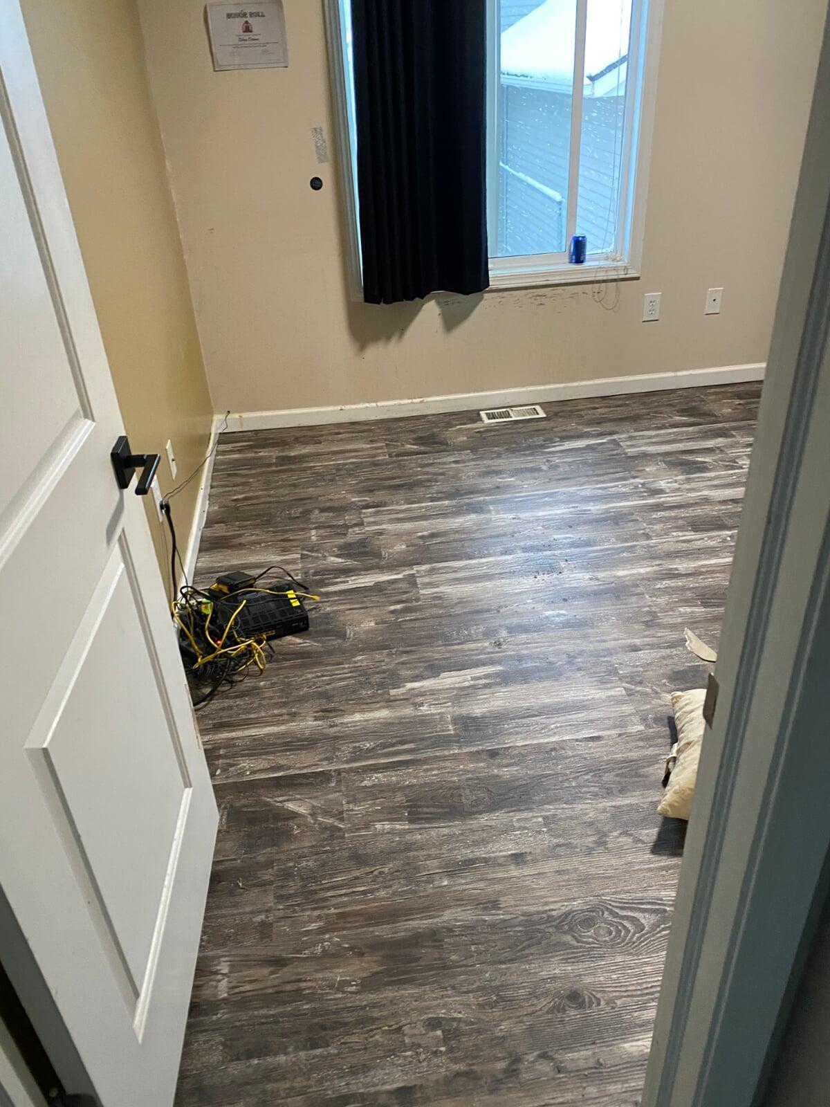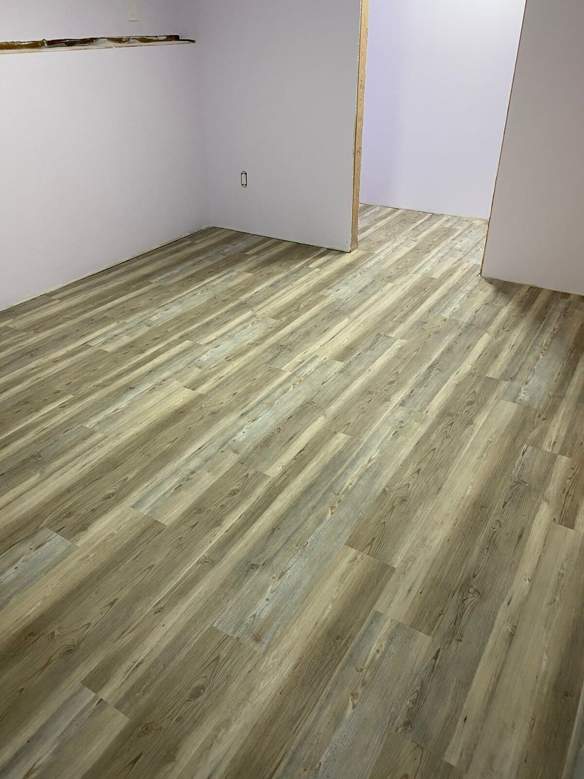 Installation of LVP and laminate flooring including floor trim molding. Minor sub-floor repairs.